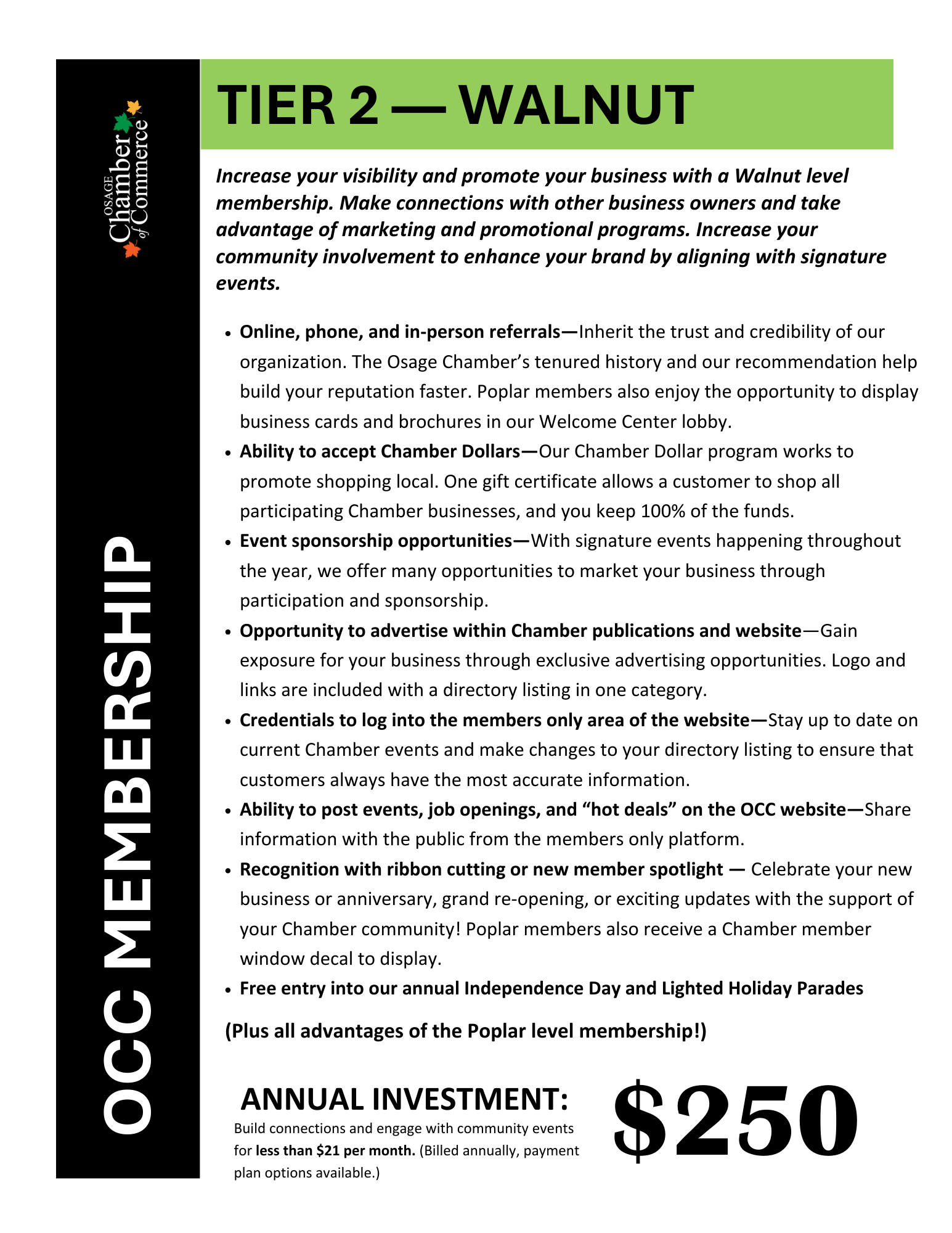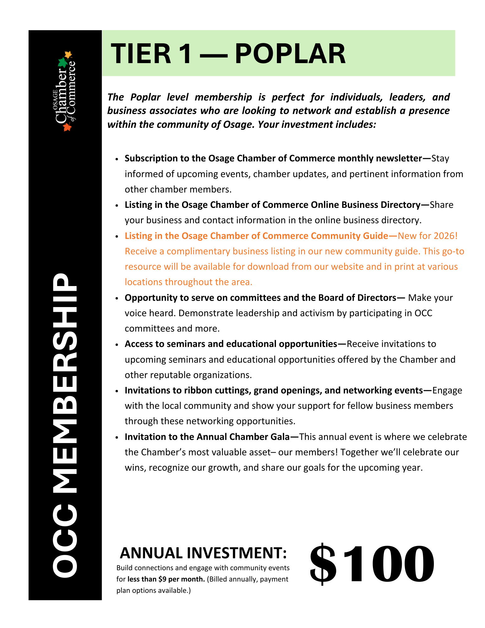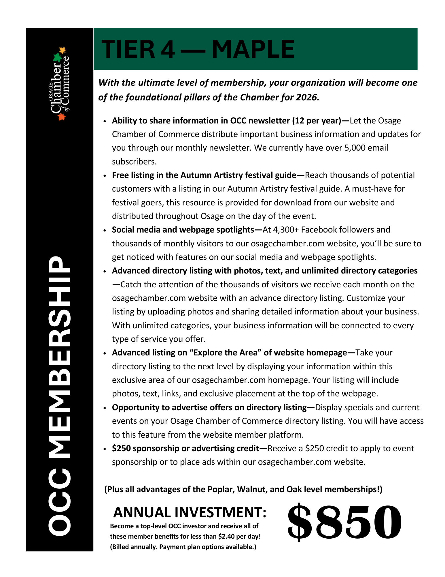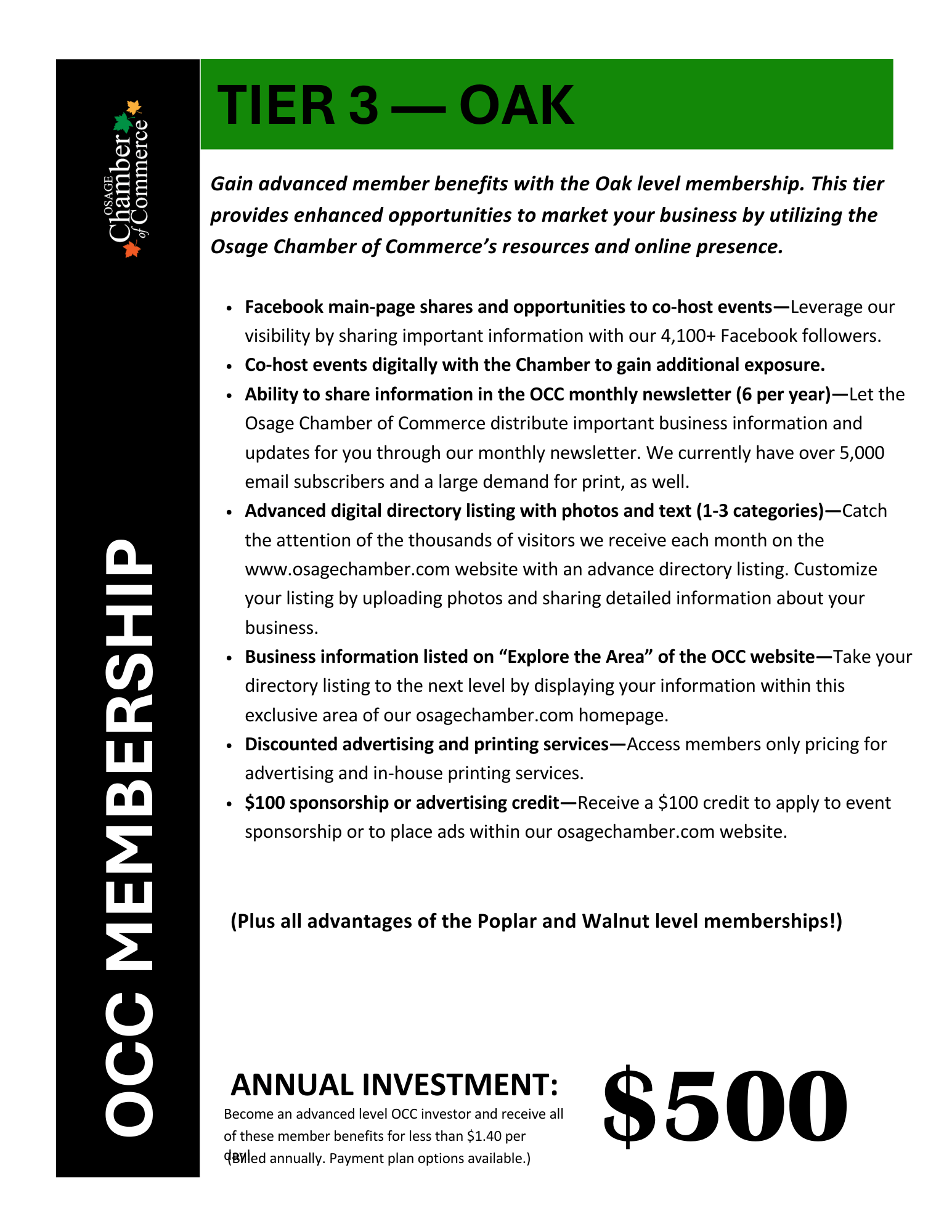 Join the Osage Chamber of Commerce today and gain access to exclusive member benefits!